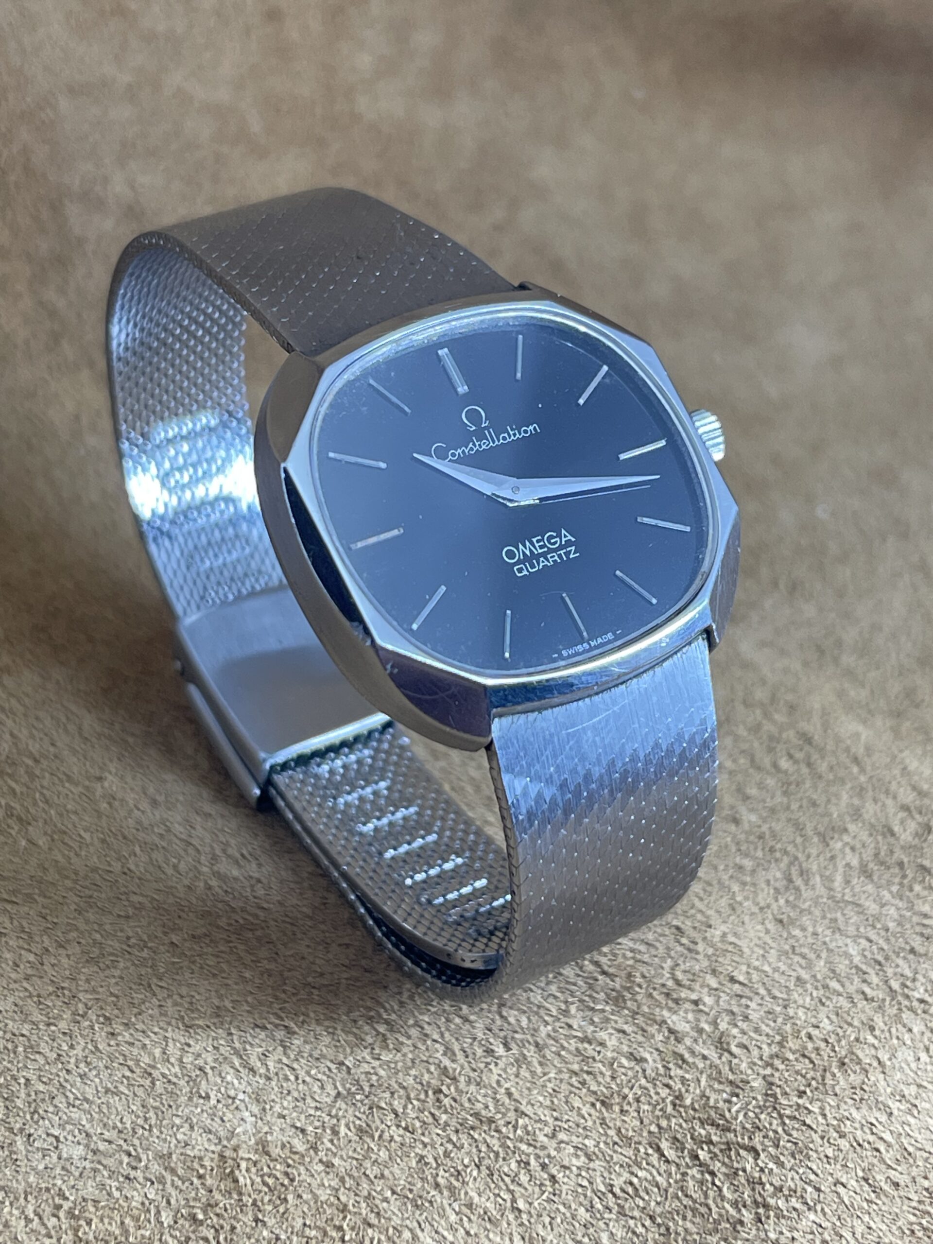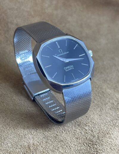 Watches 50 – 500€ Constellation Quartz DESCRIPTIONBrand: OmegaModel: Constellation QuartzReference: 391.0013Movement: Quartz 1330Year: 1978Condition: Good.Material: Stainless SteelGender: Mens watch/UnisexSize: 32 x 30 mmBox and papers: N/APrice: € 500,-