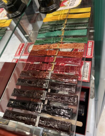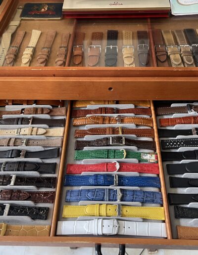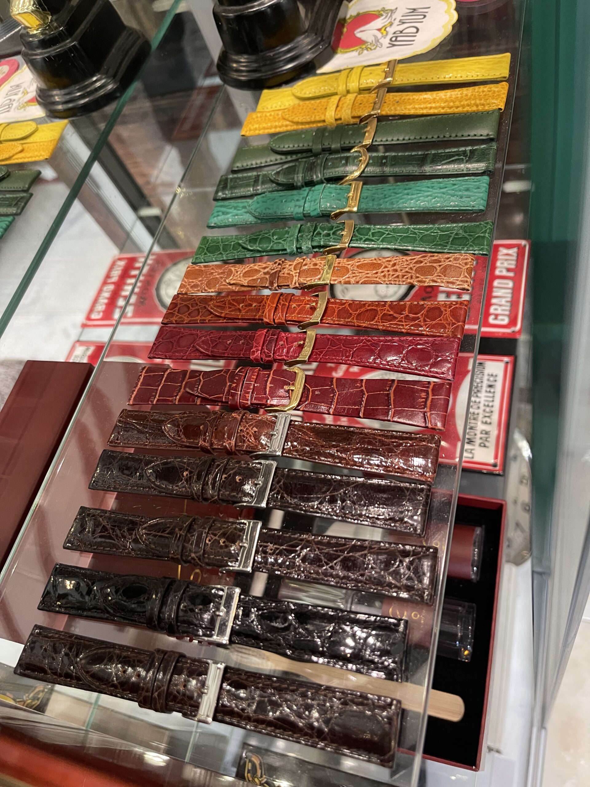 PRINTED WATCH ADS Watch Straps we always stock a wide variety of nice watch straps from suede to pinhole or crocodile Italian handmade.Prices ranging from € 35 – € 80 a piece.