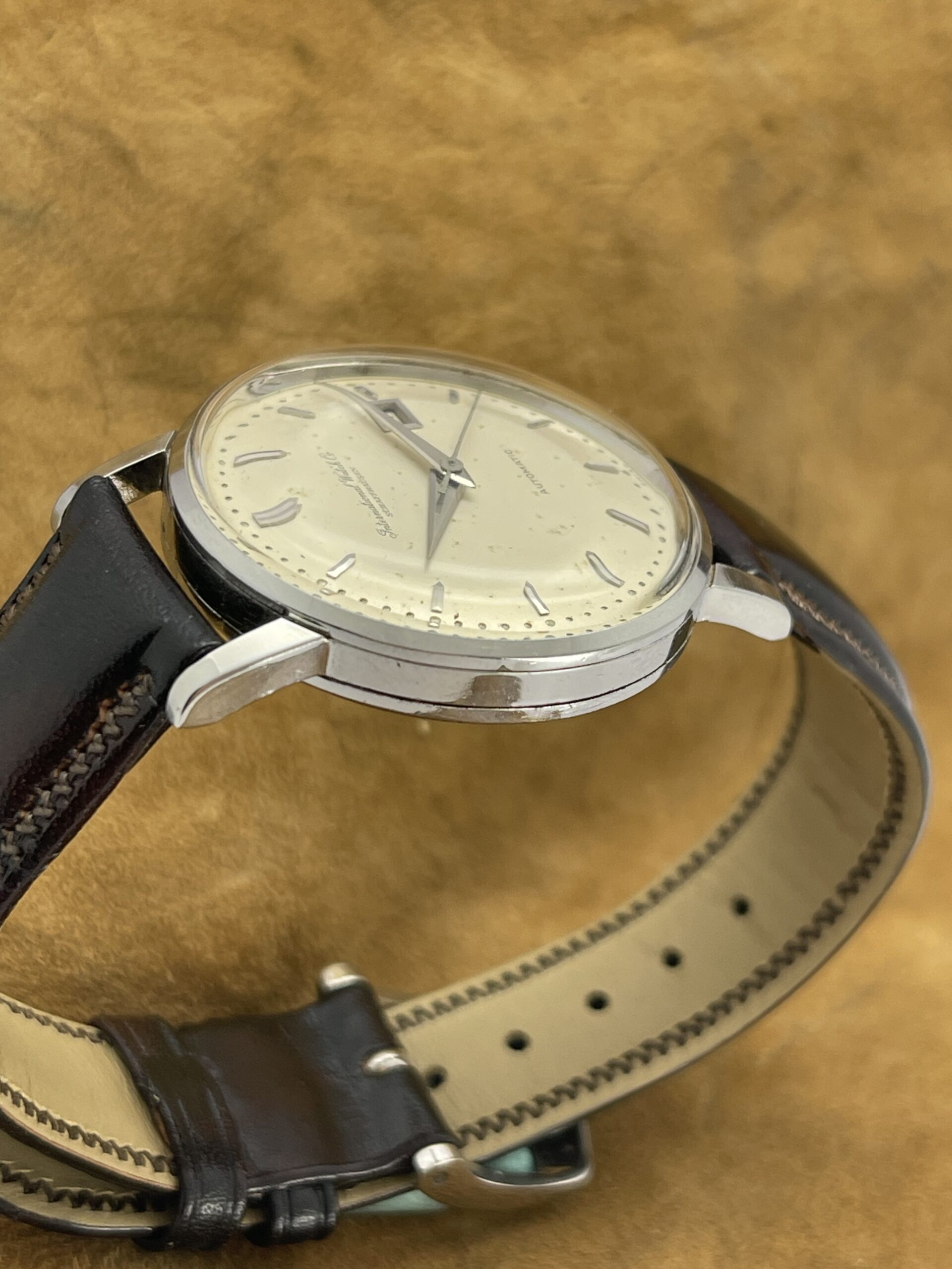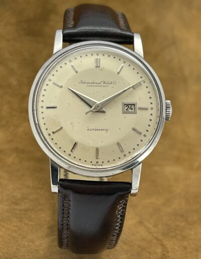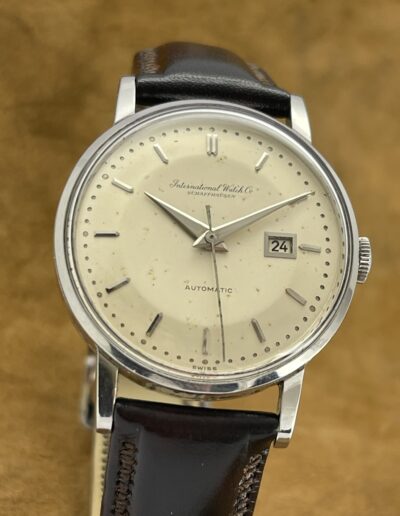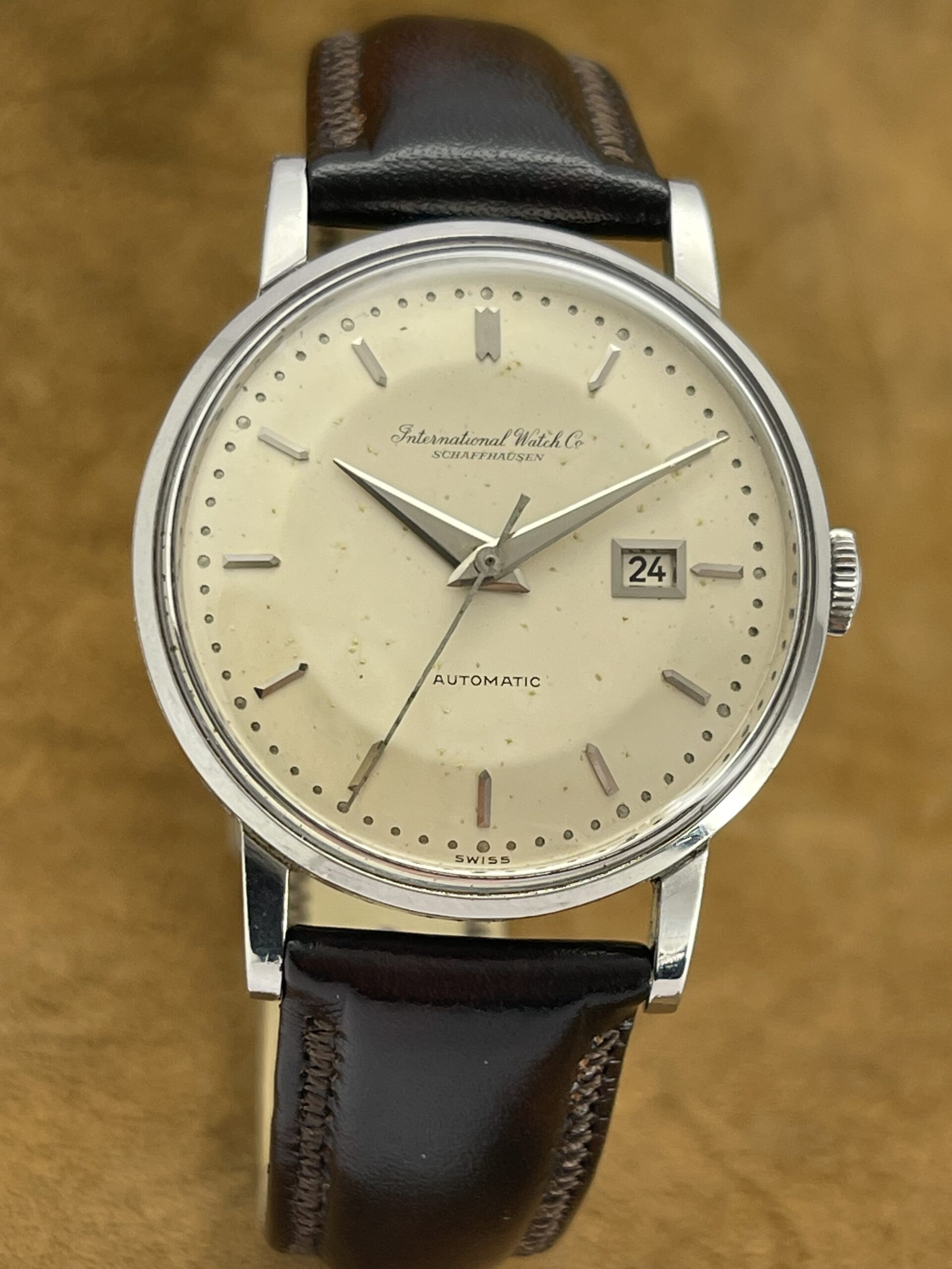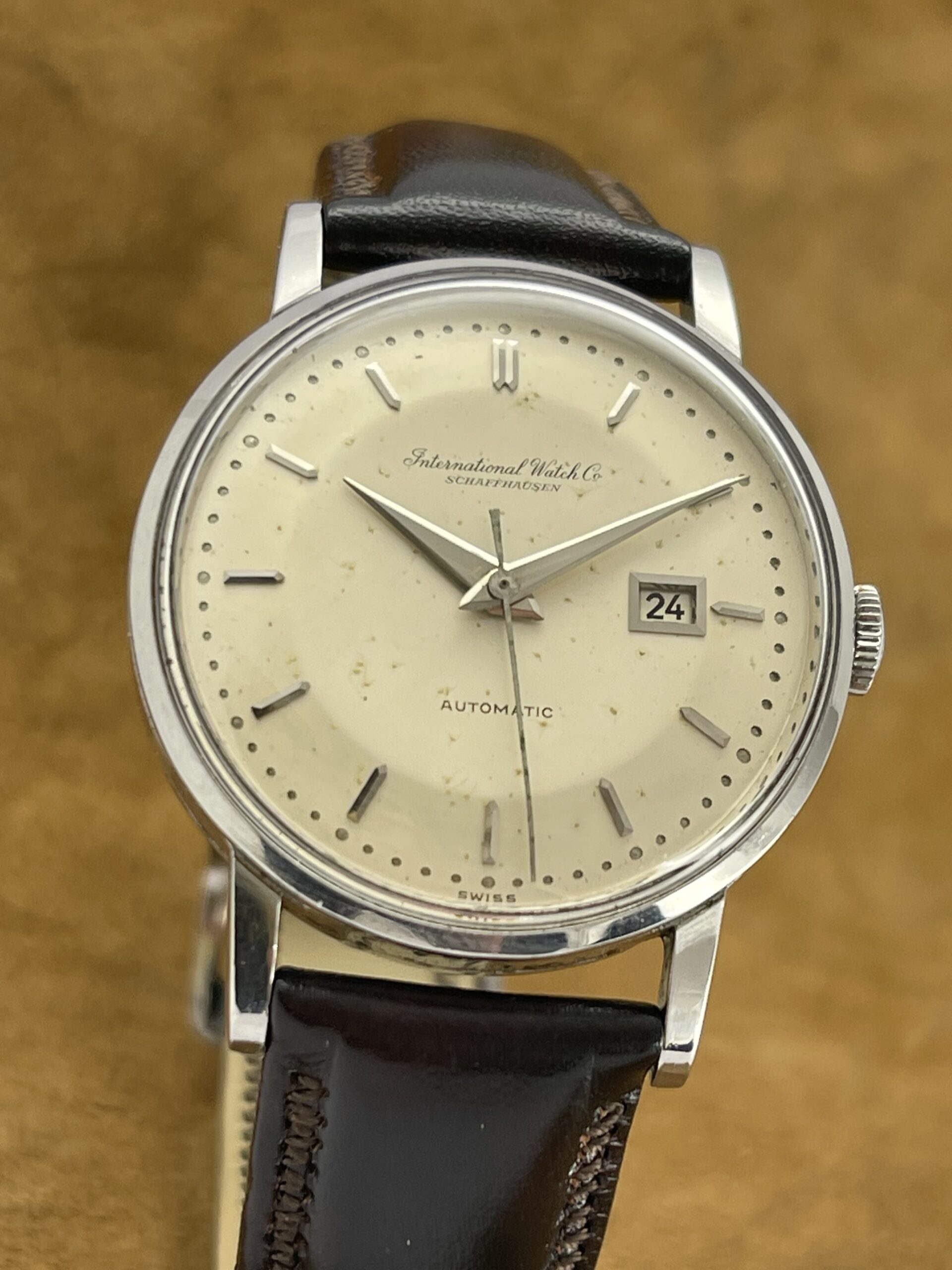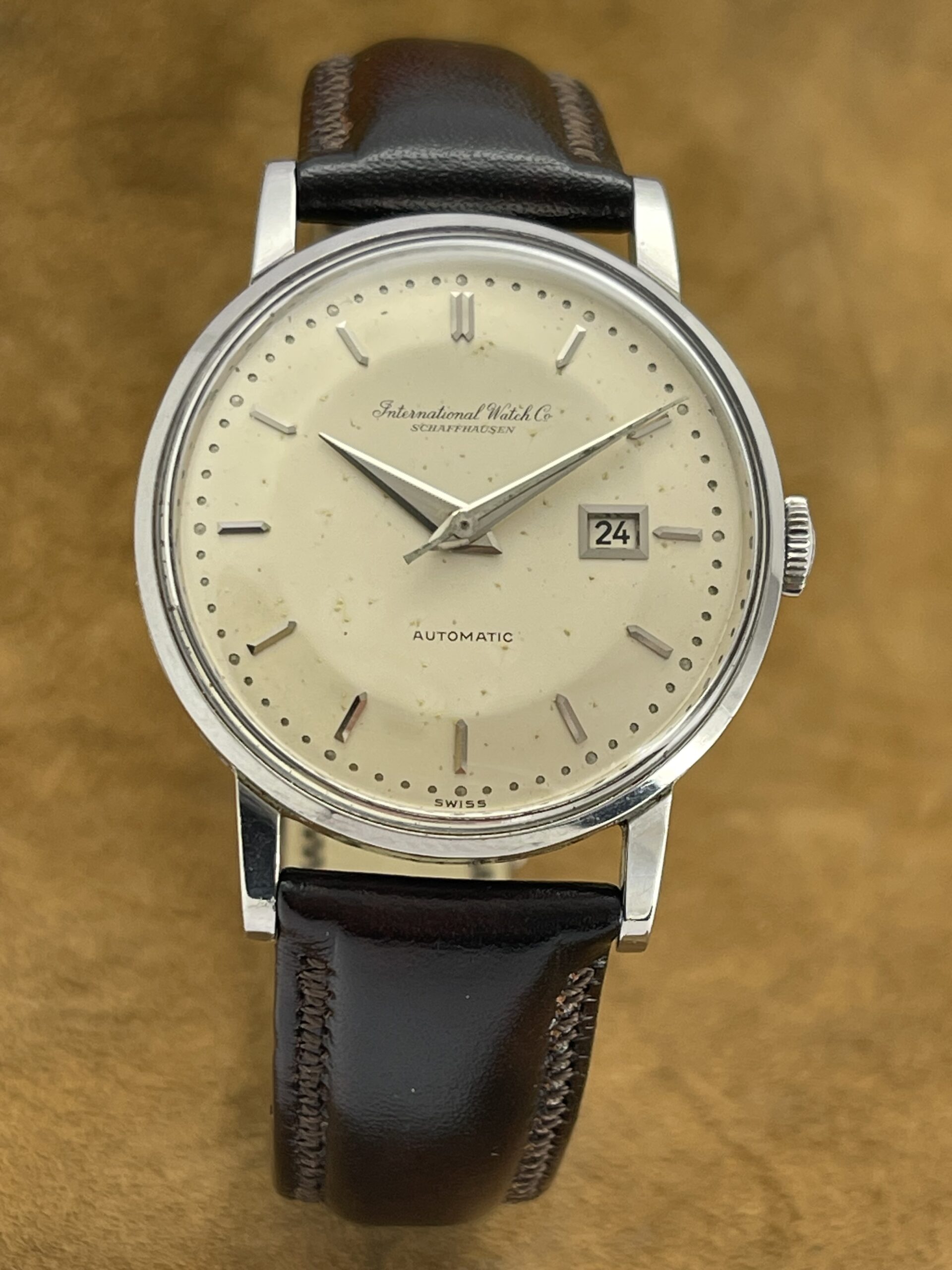 WATCHES IWC Pie Pan Automatic DESCRIPTIONBrand: IWCModel: Pie PanReference: 8531 Pie PanMovement: Cal 8531 AutomaticYear: 1962 (aproximation)Condition: GoodMaterial: Stainless SteelGender: Mens watch/UnisexSize: 34 x 42 mmBox and papers N/APrice: € Sold.