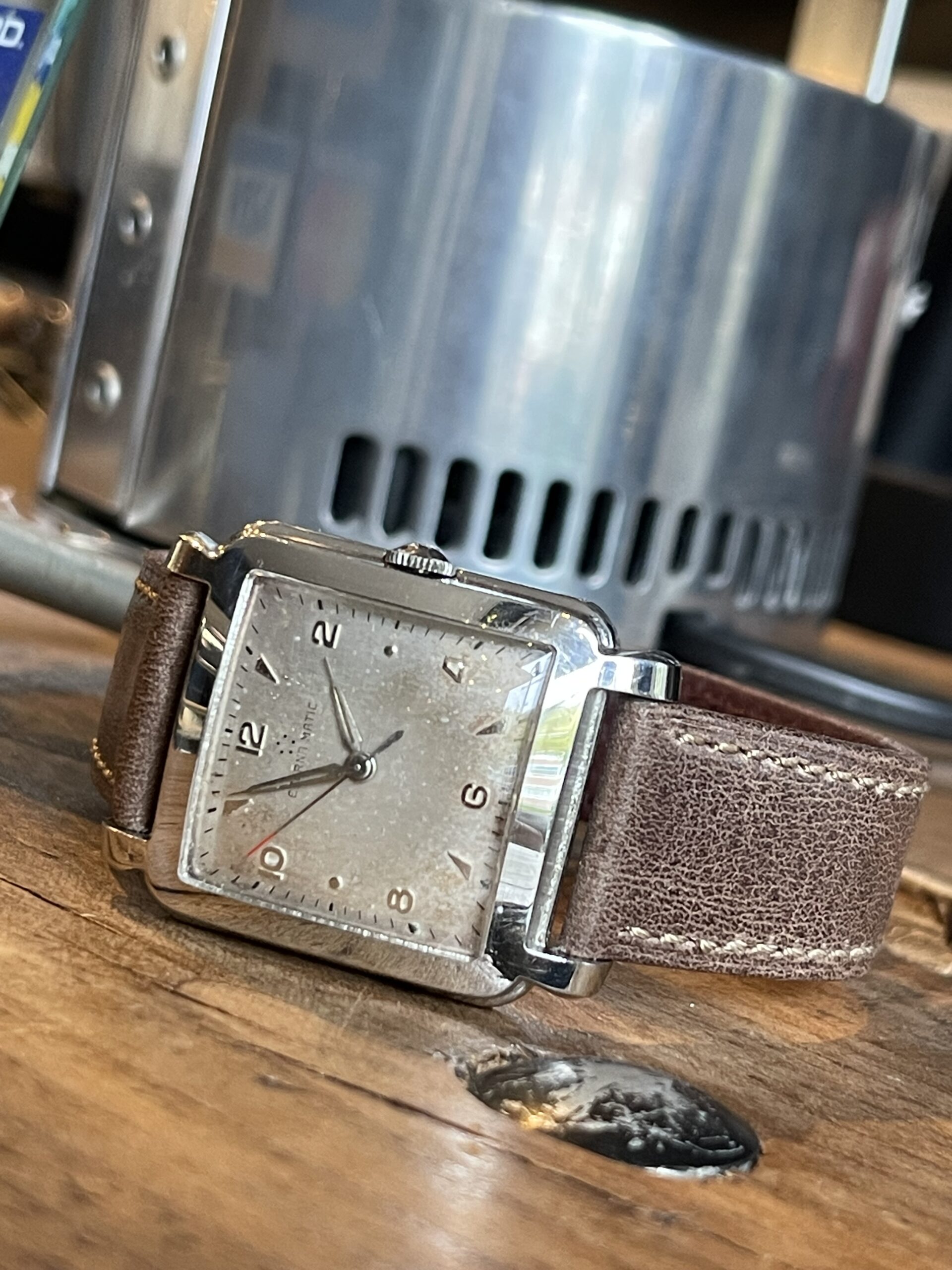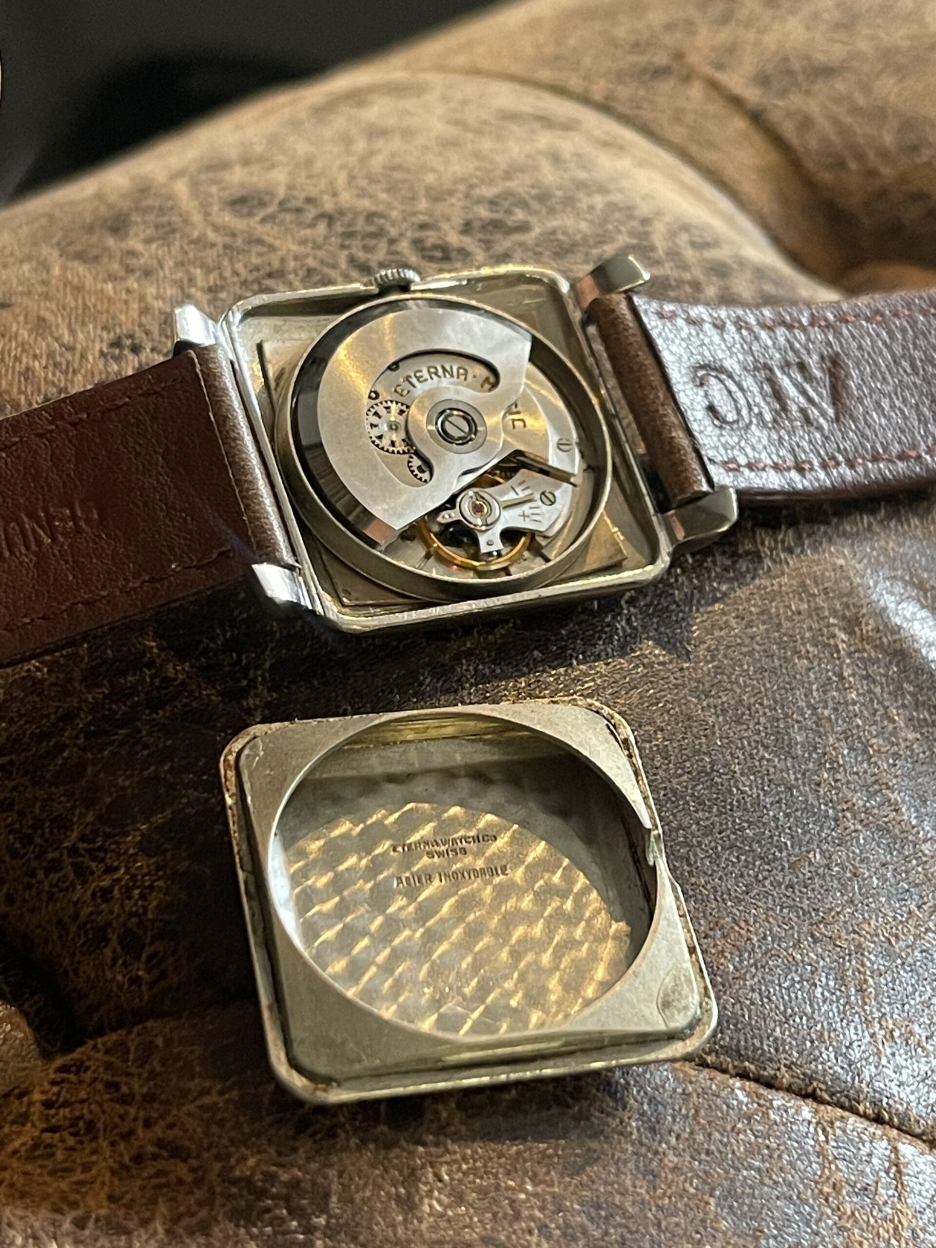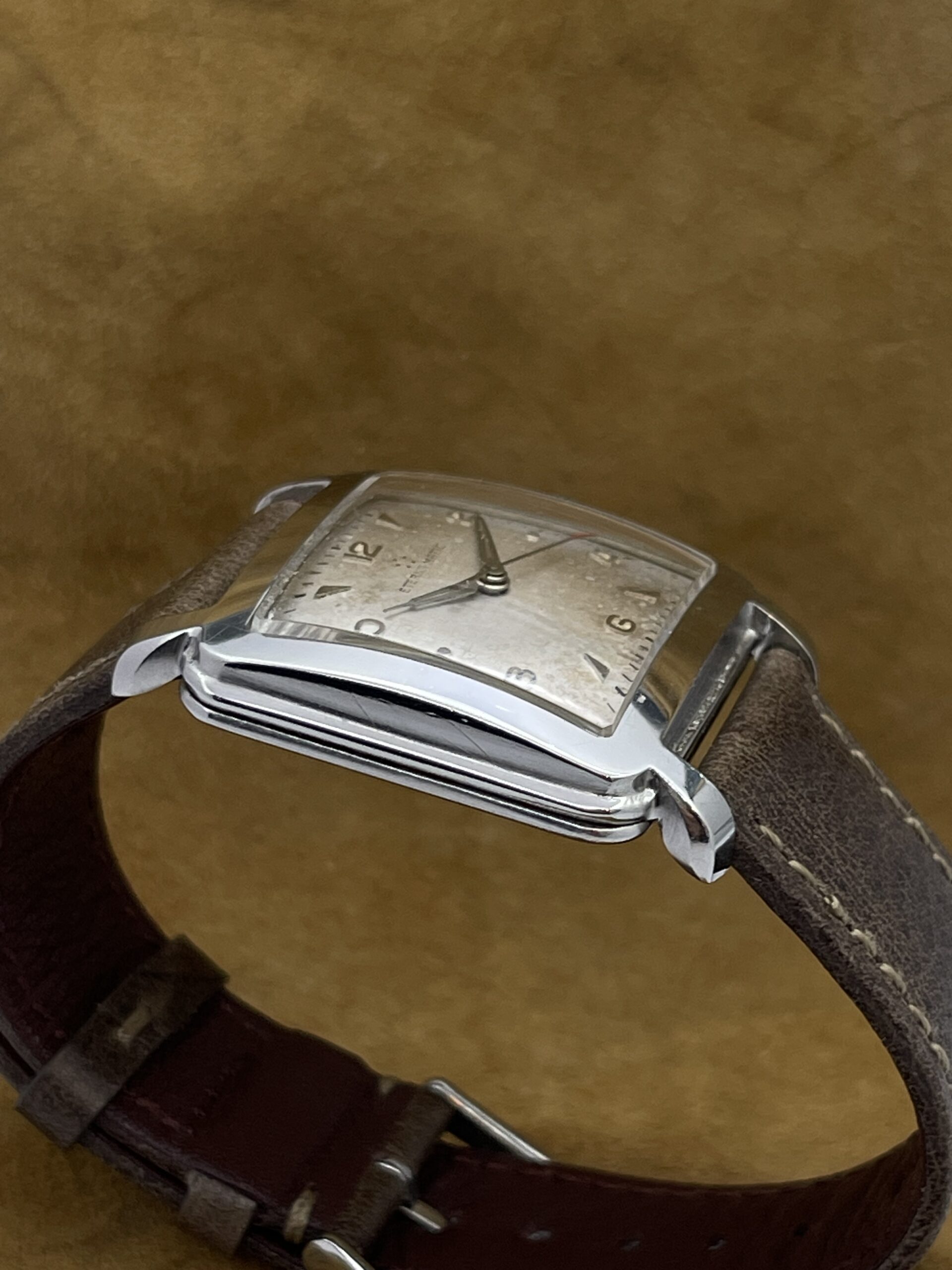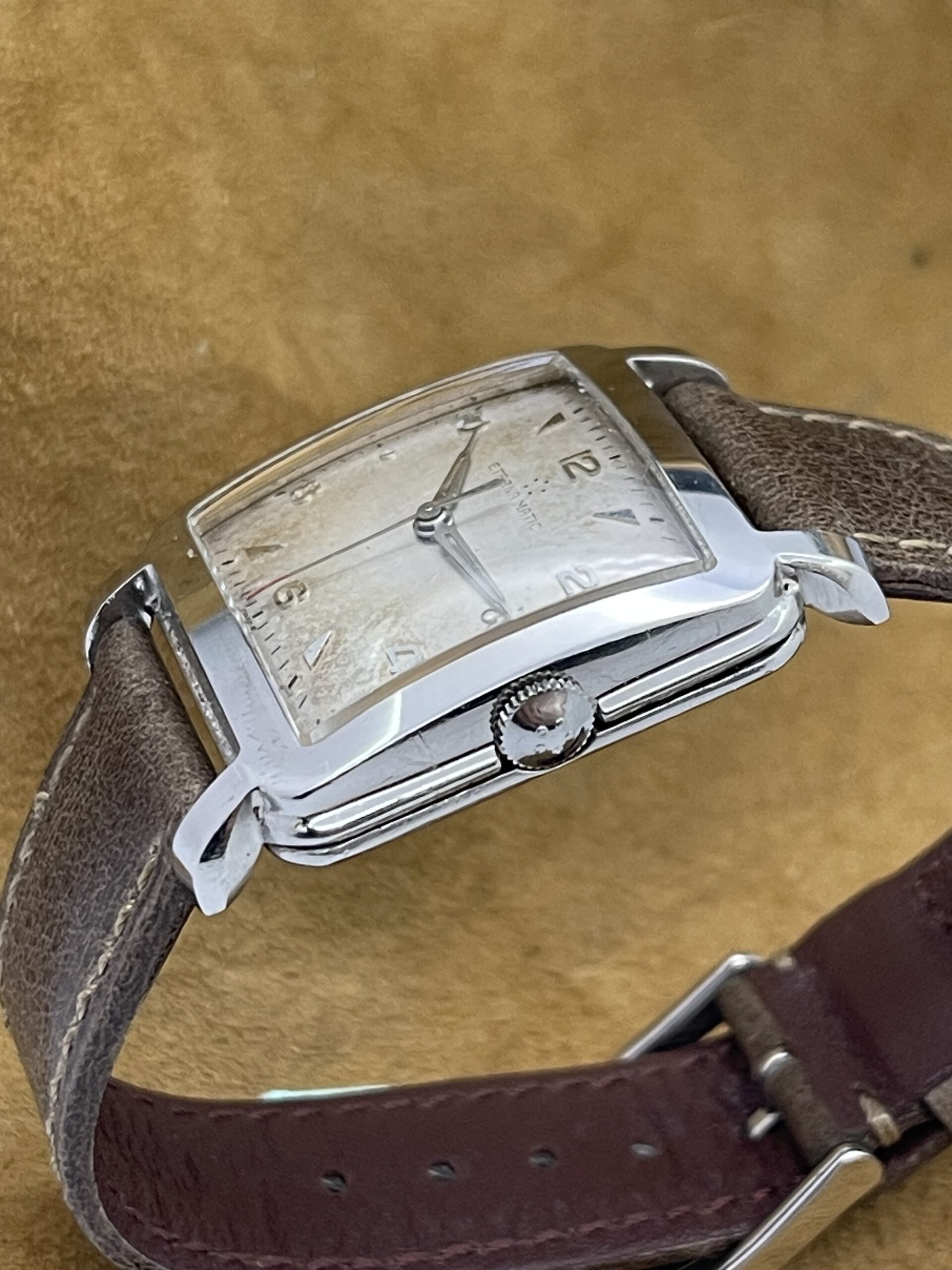 WATCHES Eterna – Matic Cioccolatone DESCRIPTIONBrand: EternaModel: Eterna MaticReference: Movement: Cal 1253 uc AutomaticYear: 1960 (aproximation)Condition: Good, Patina DialMaterial: Stainless SteelGender: Mens watch/UnisexSize: 32 x 40 mmBox and papers N/APrice: € 800,-