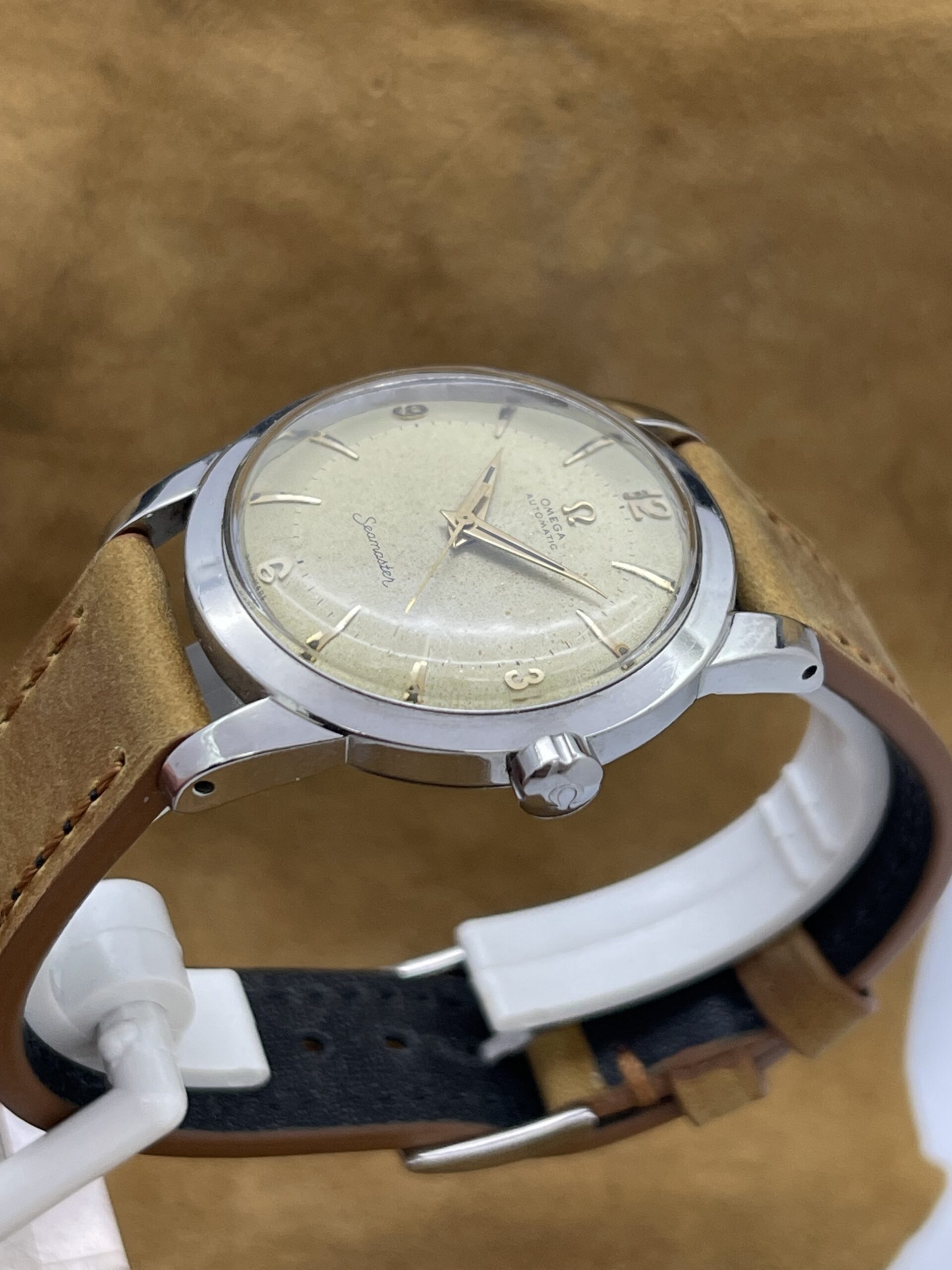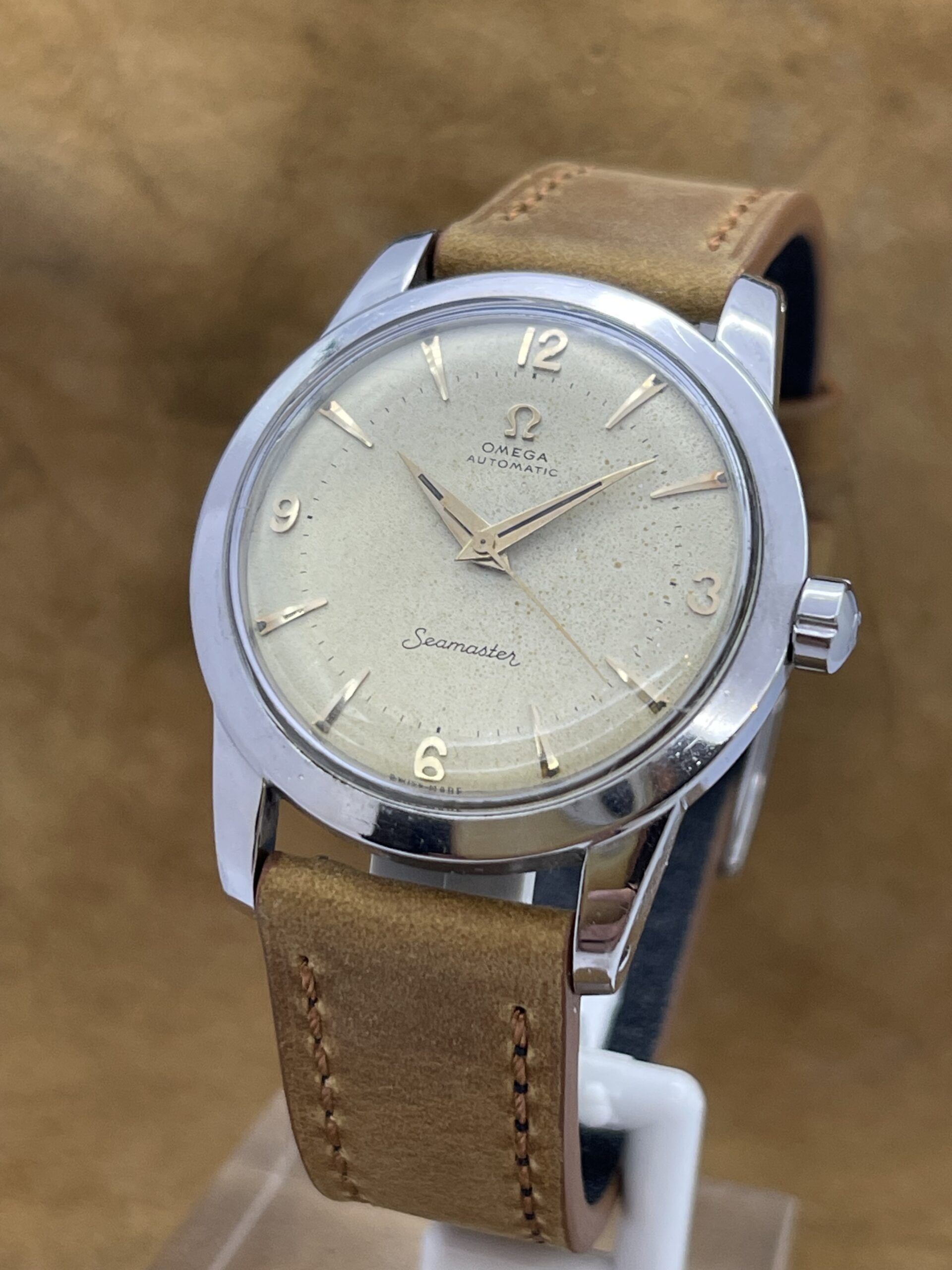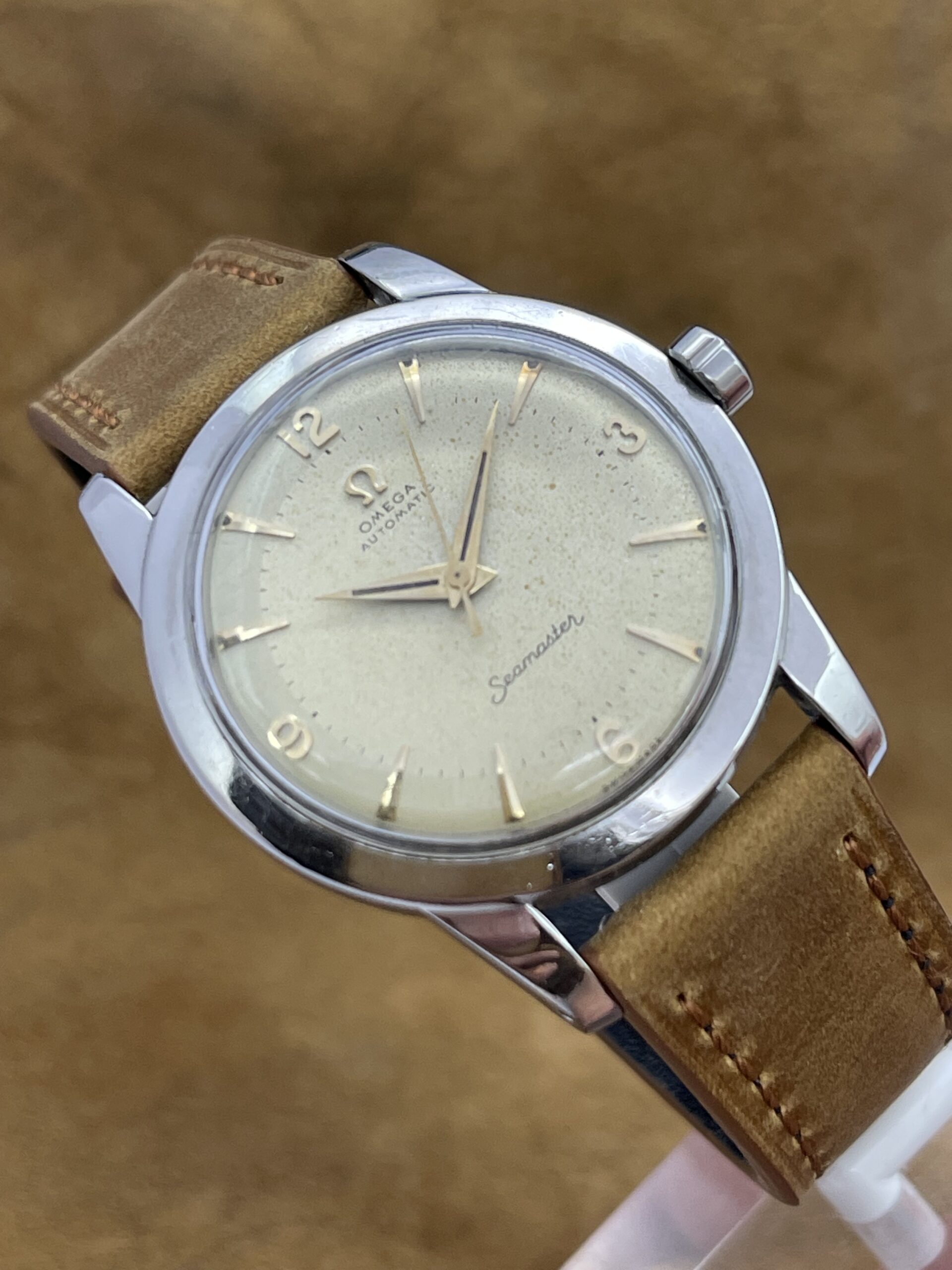 WATCHES Omega Seamaster Bumper DESCRIPTIONBrand: OmegaModel: Seamaster BumperReference: C 2577-4Movement: Cal 501 AutomaticYear: 1951Condition: Good, ServicedMaterial: Stainless SteelGender: Mens watch/UnisexSize: 34,5 x 42,5 mmBox and papers: N/APrice: € 1450,-