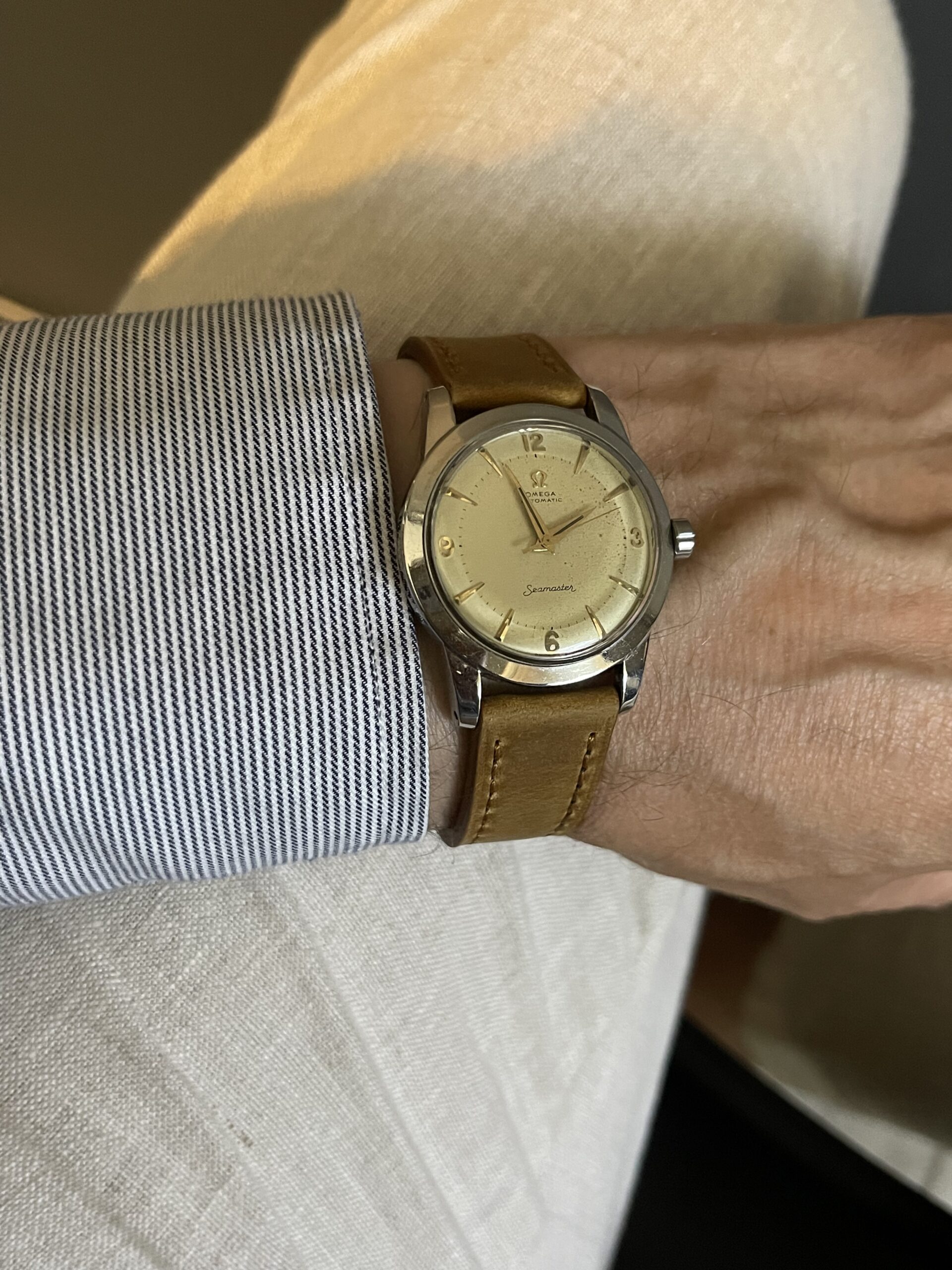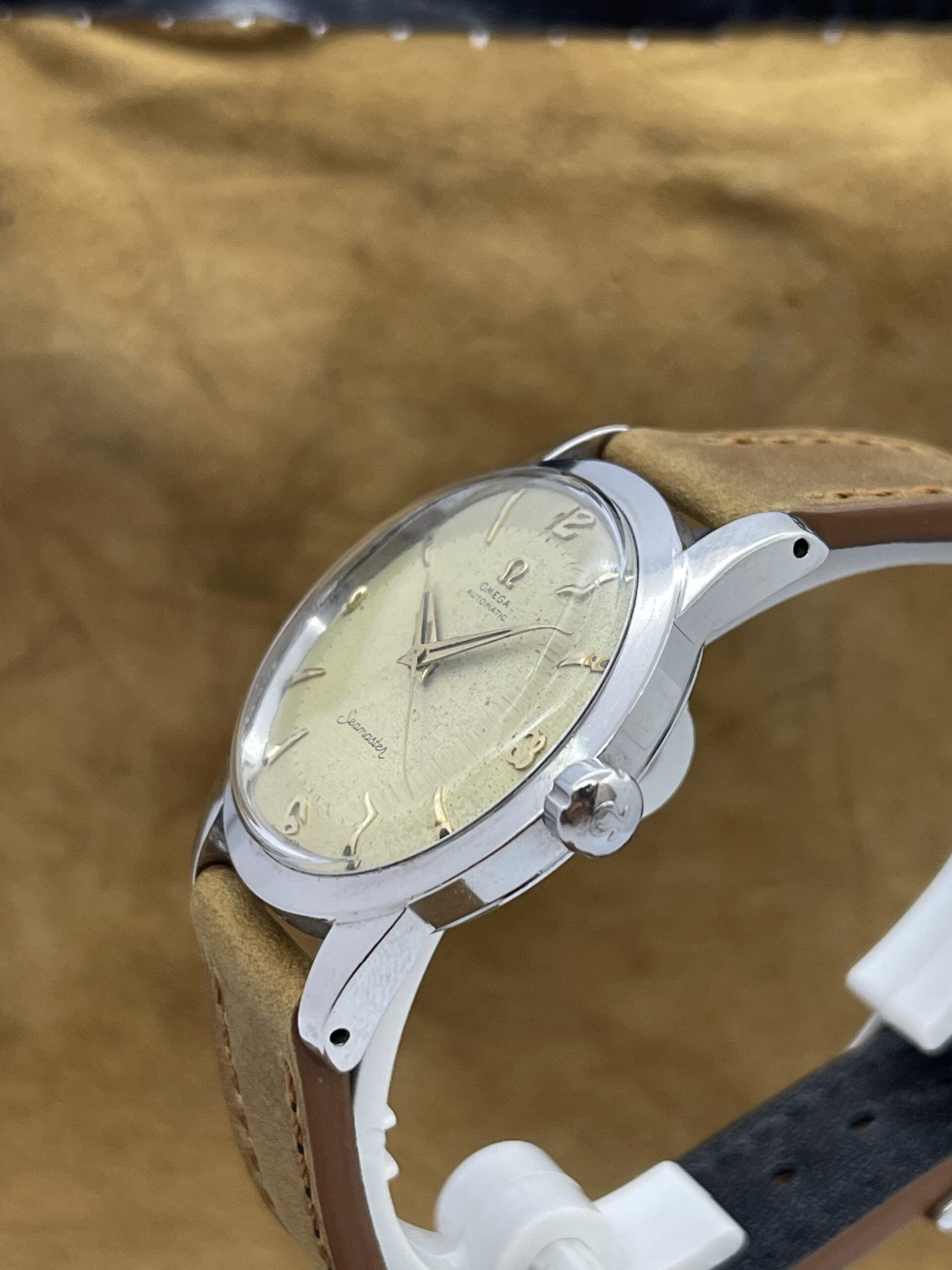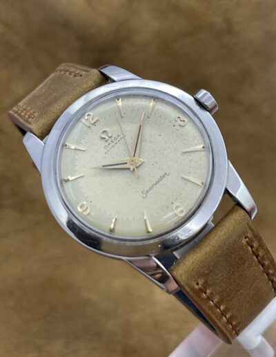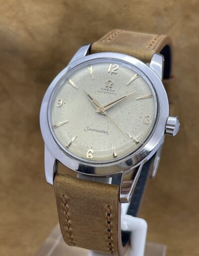 WATCHES Omega Seamaster Bumper DESCRIPTIONBrand: OmegaModel: Seamaster BumperReference: C 2577-4Movement: Cal 501 AutomaticYear: 1951Condition: Good, ServicedMaterial: Stainless SteelGender: Mens watch/UnisexSize: 34,5 x 42,5 mmBox and papers: N/APrice: € 1450,-