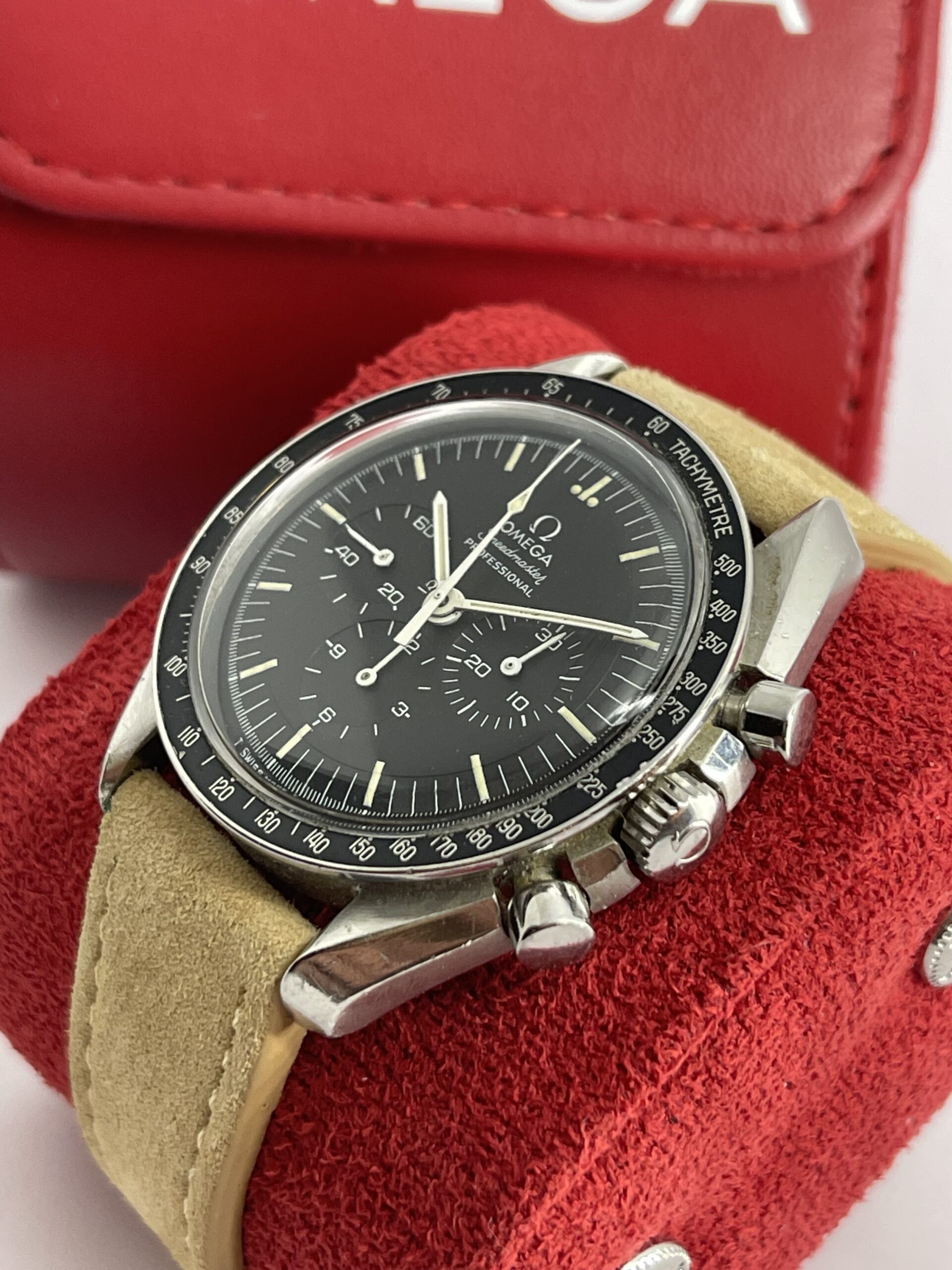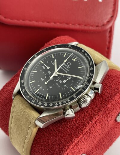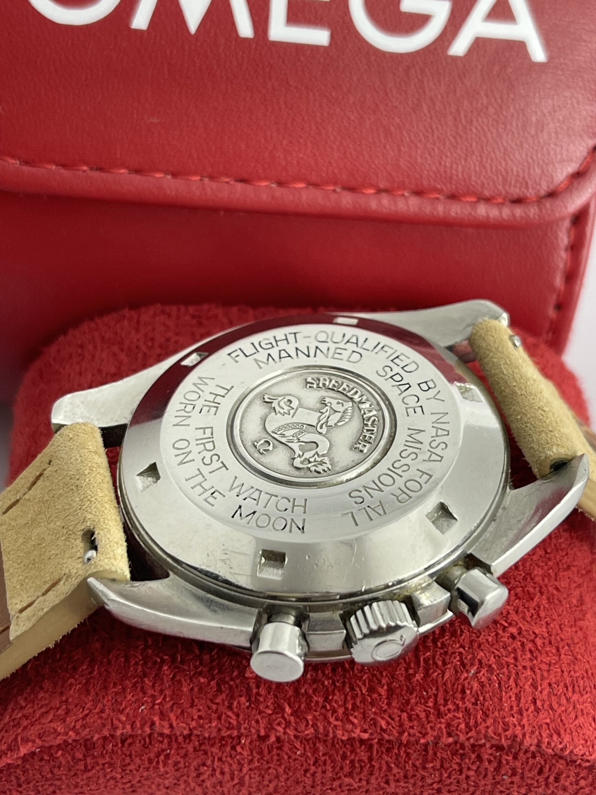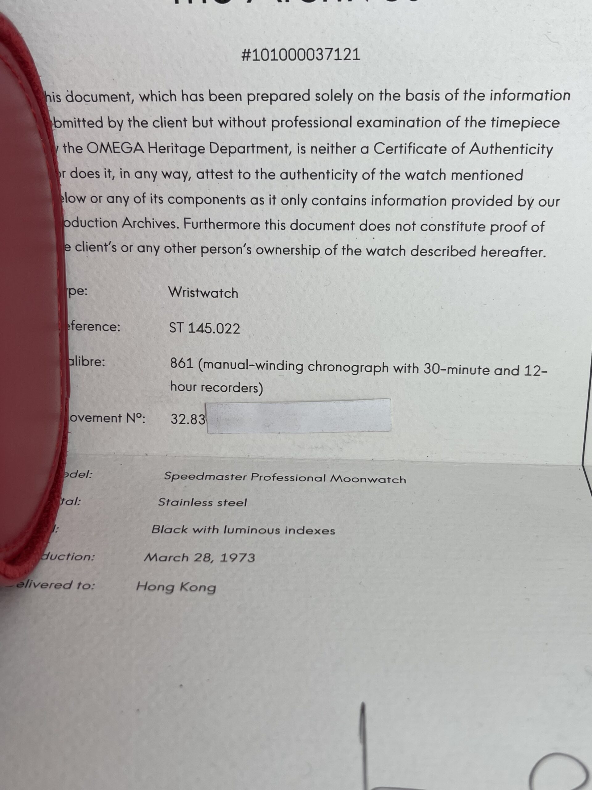 WATCHES Omega speedmaster Ref 145.022 DESCRIPTIONBrand: OmegaModel: Speedmaster 1973Reference: 145.022Movement: Cal 861Year: 1973Condition: GoodMaterial: Stainless SteelGender: Mens watch/UnisexSize: 42 mm Box and papers: Extract and pouchPrice: € 5750