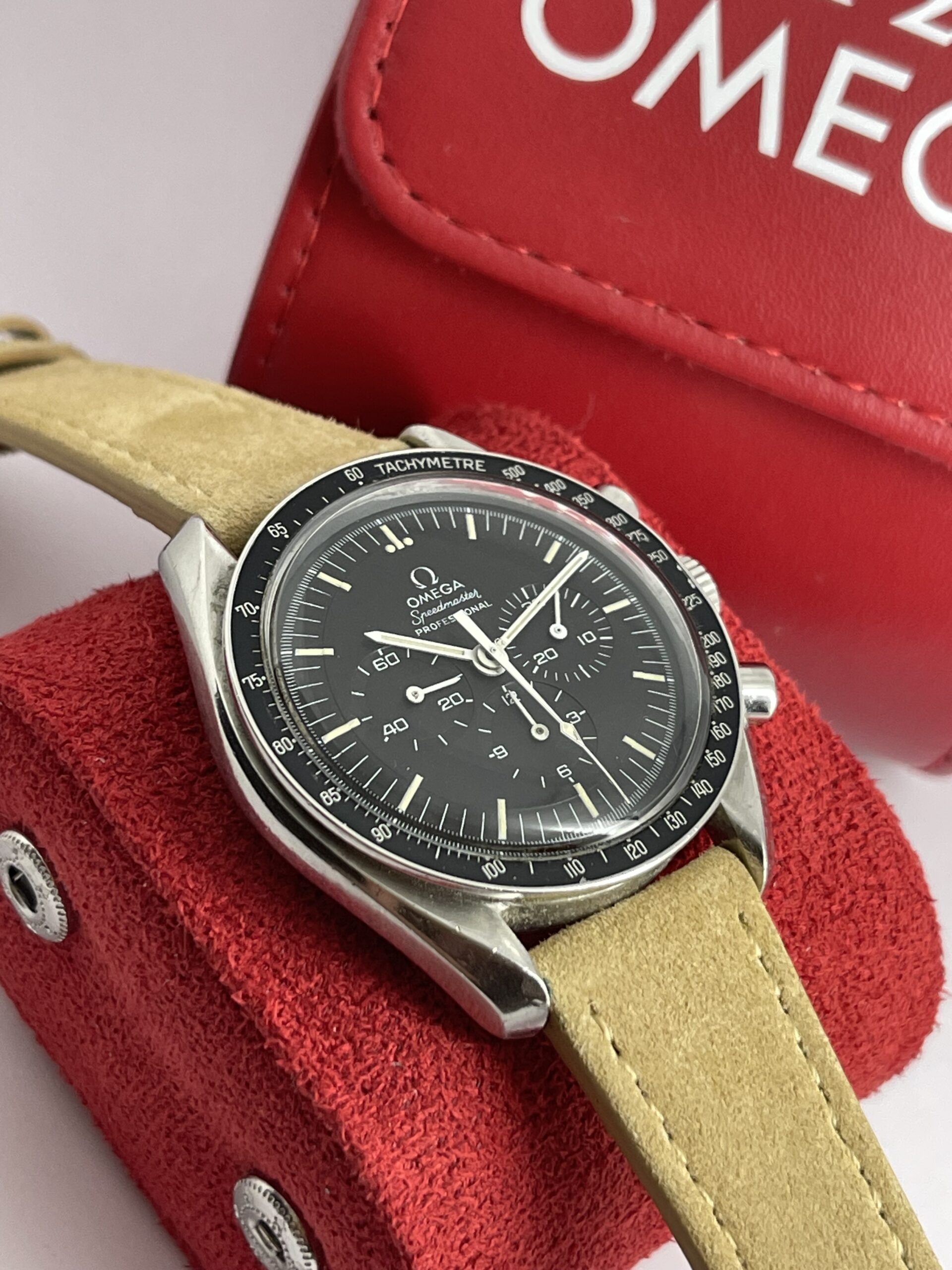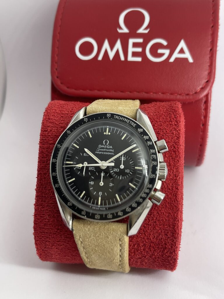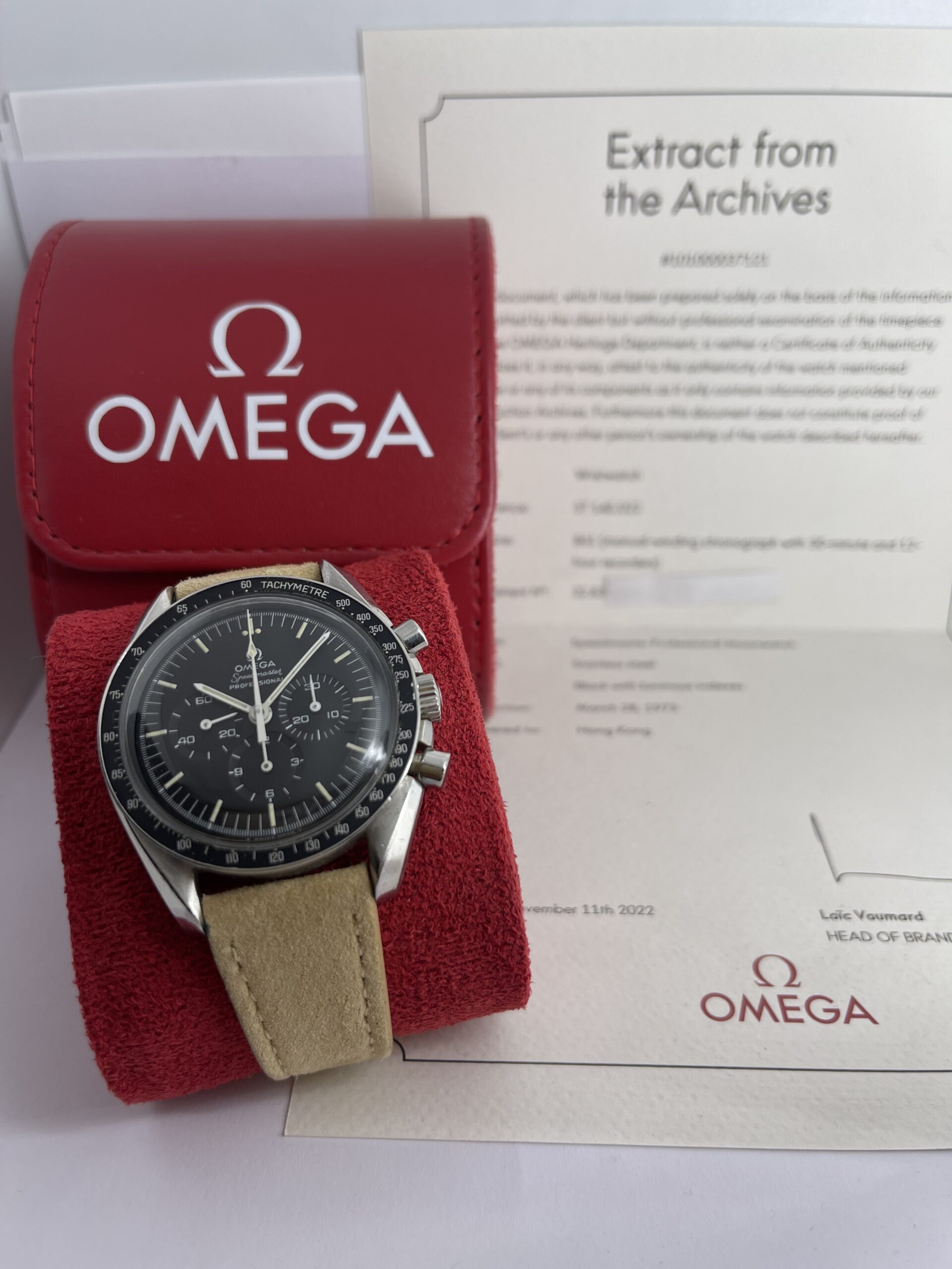 WATCHES Omega speedmaster Ref 145.022 DESCRIPTIONBrand: OmegaModel: Speedmaster 1973Reference: 145.022Movement: Cal 861Year: 1973Condition: GoodMaterial: Stainless SteelGender: Mens watch/UnisexSize: 42 mm Box and papers: Extract and pouchPrice: € 5750