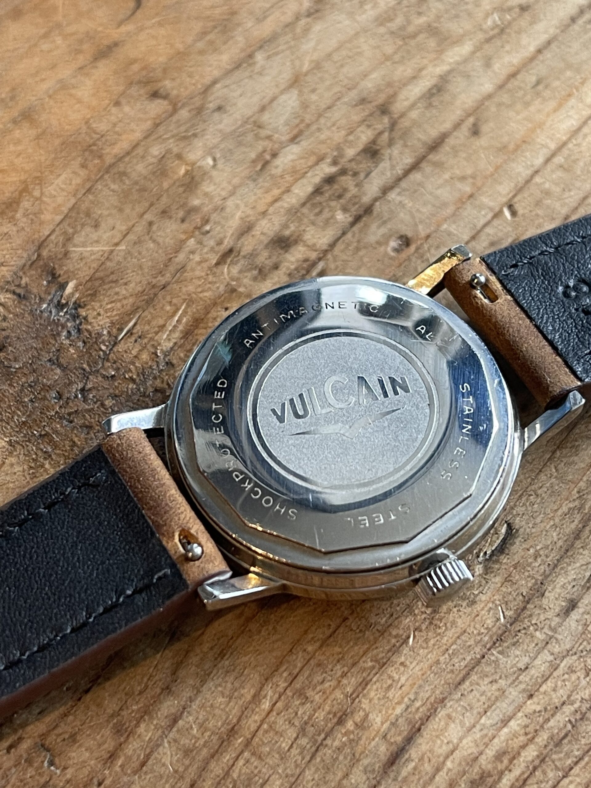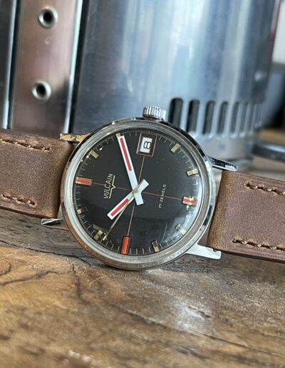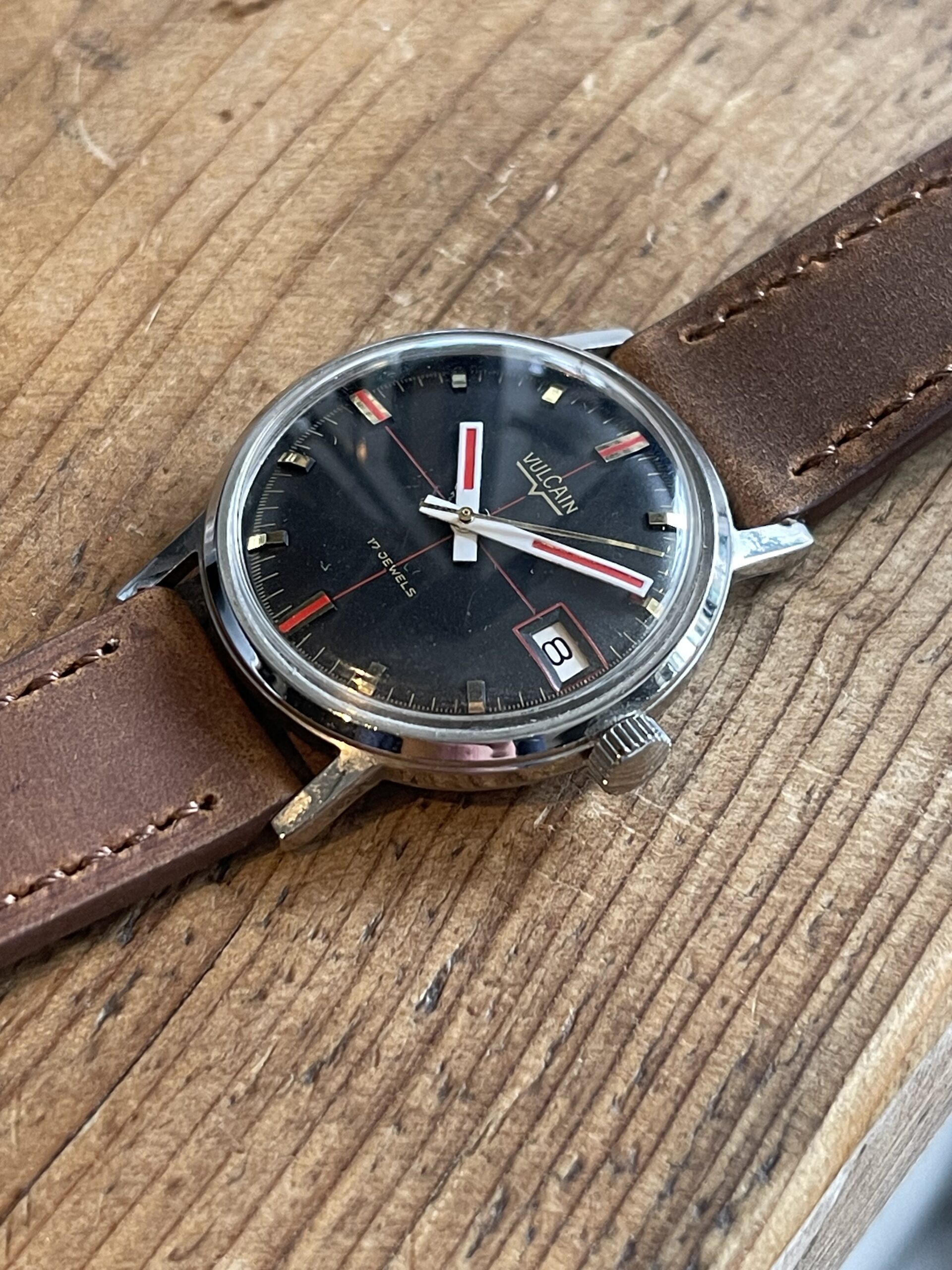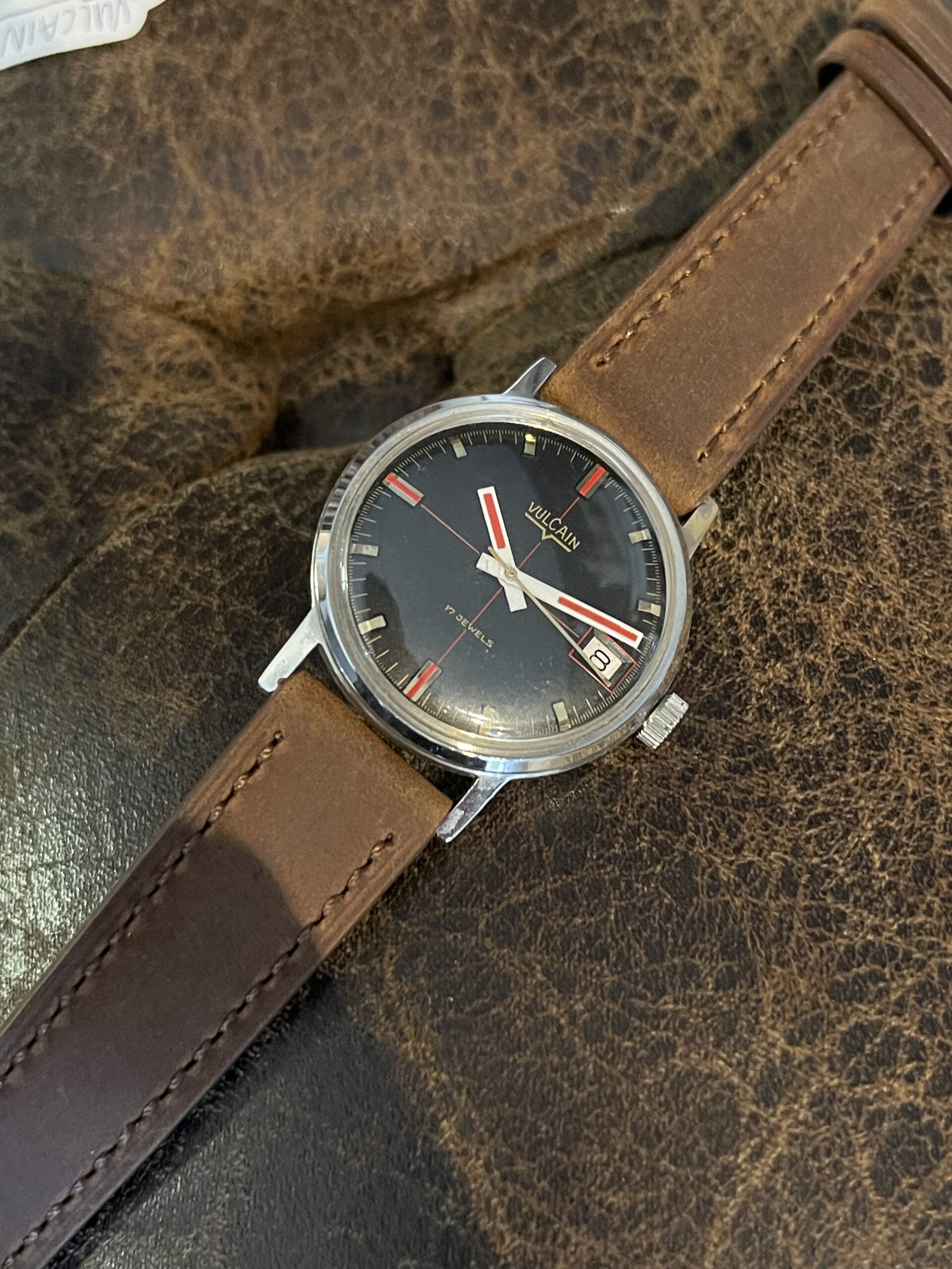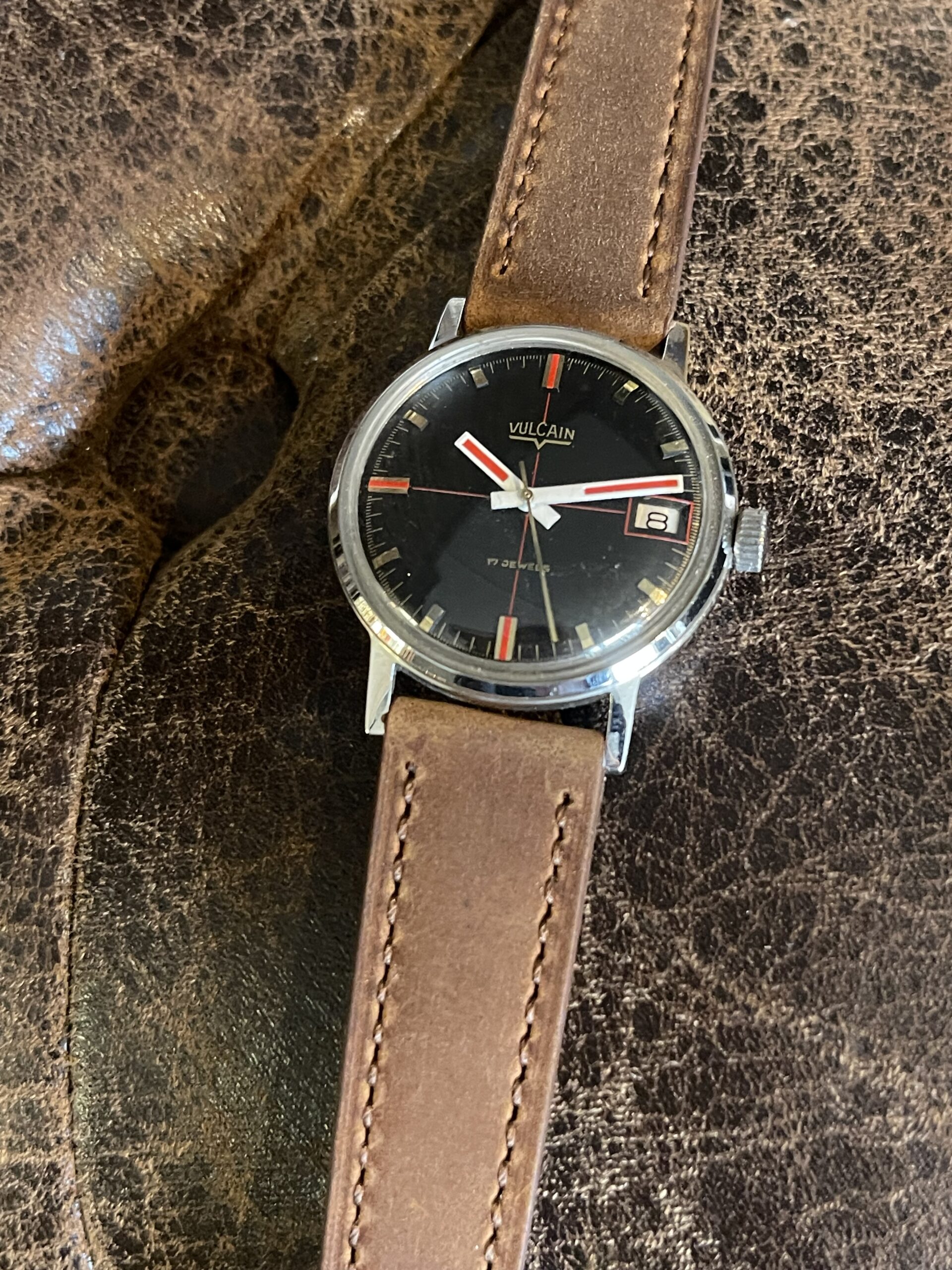 Watches 50 – 500€ Vulcain 17 Jewels DESCRIPTIONBrand: VulcainModel: 17 JewelsReference:Movement: Manual windYear: 1960’s Condition: goodMaterial: Stainless SteelGender: Mens watch/UnisexSize: 33,5 x 40,5 mmBox and papers: N/APrice: € 275