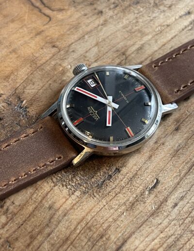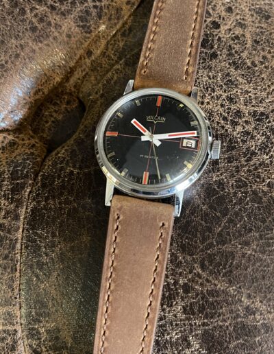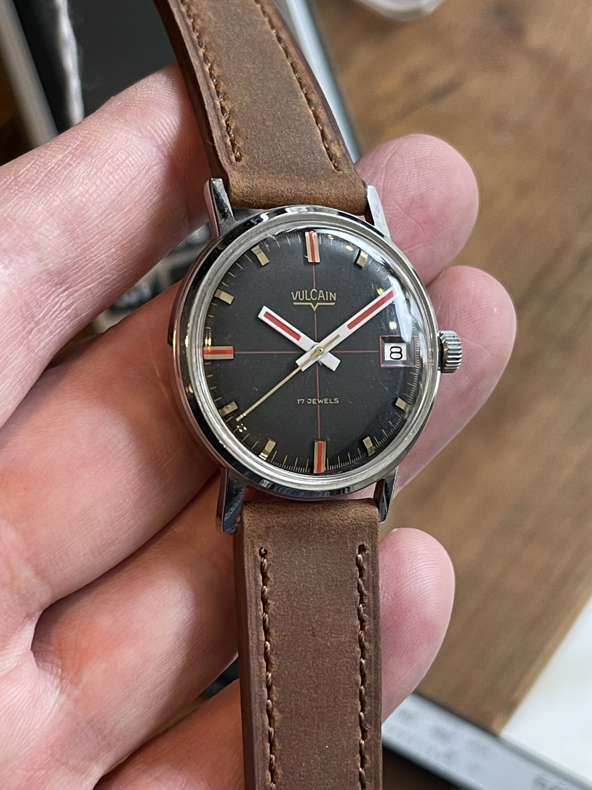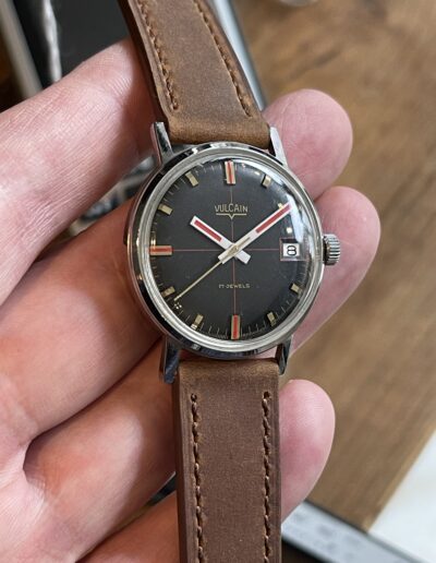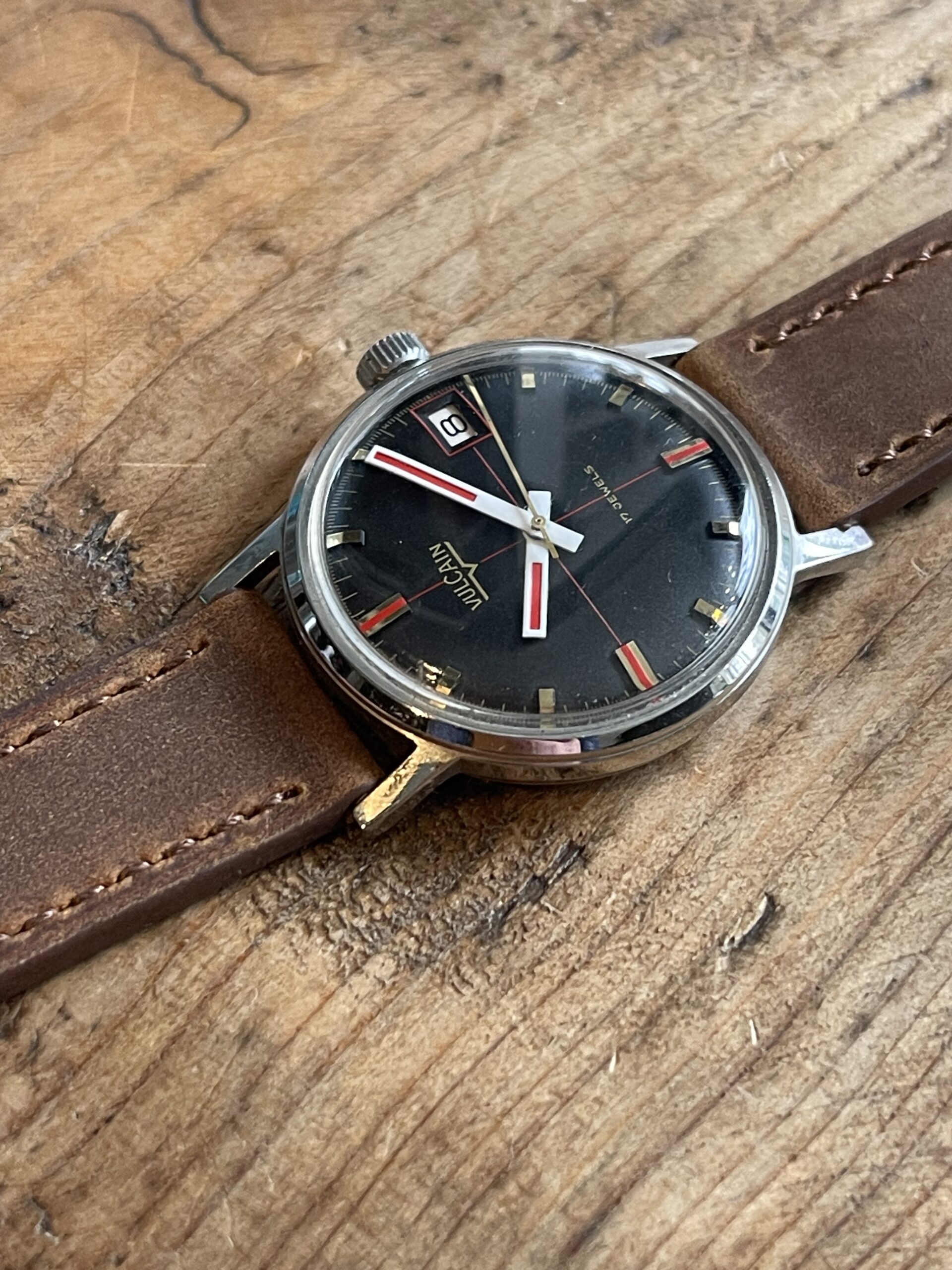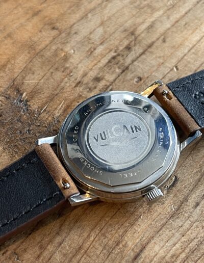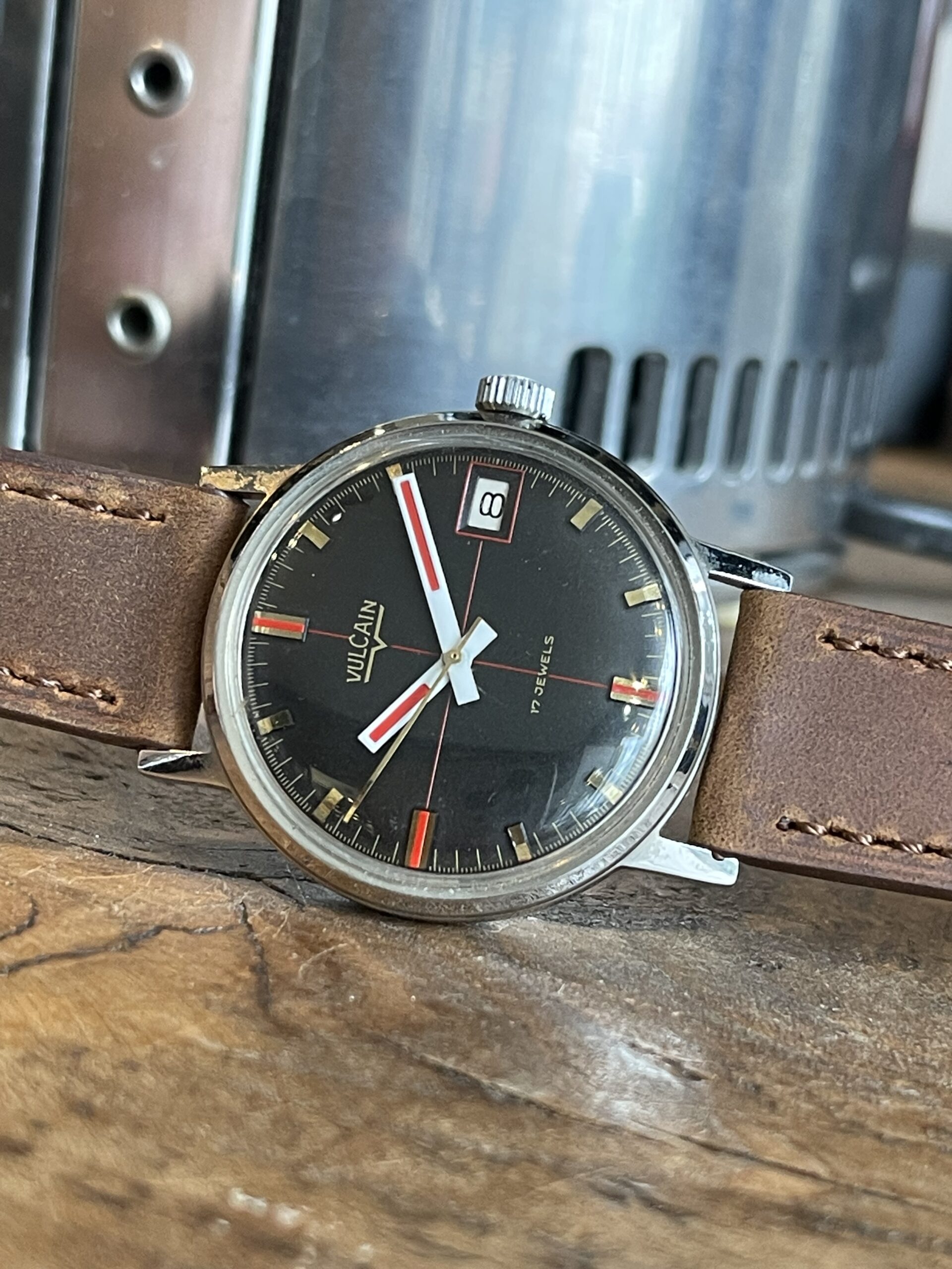Watches 50 – 500€ Vulcain 17 Jewels DESCRIPTIONBrand: VulcainModel: 17 JewelsReference:Movement: Manual windYear: 1960’s Condition: goodMaterial: Stainless SteelGender: Mens watch/UnisexSize: 33,5 x 40,5 mmBox and papers: N/APrice: € 275